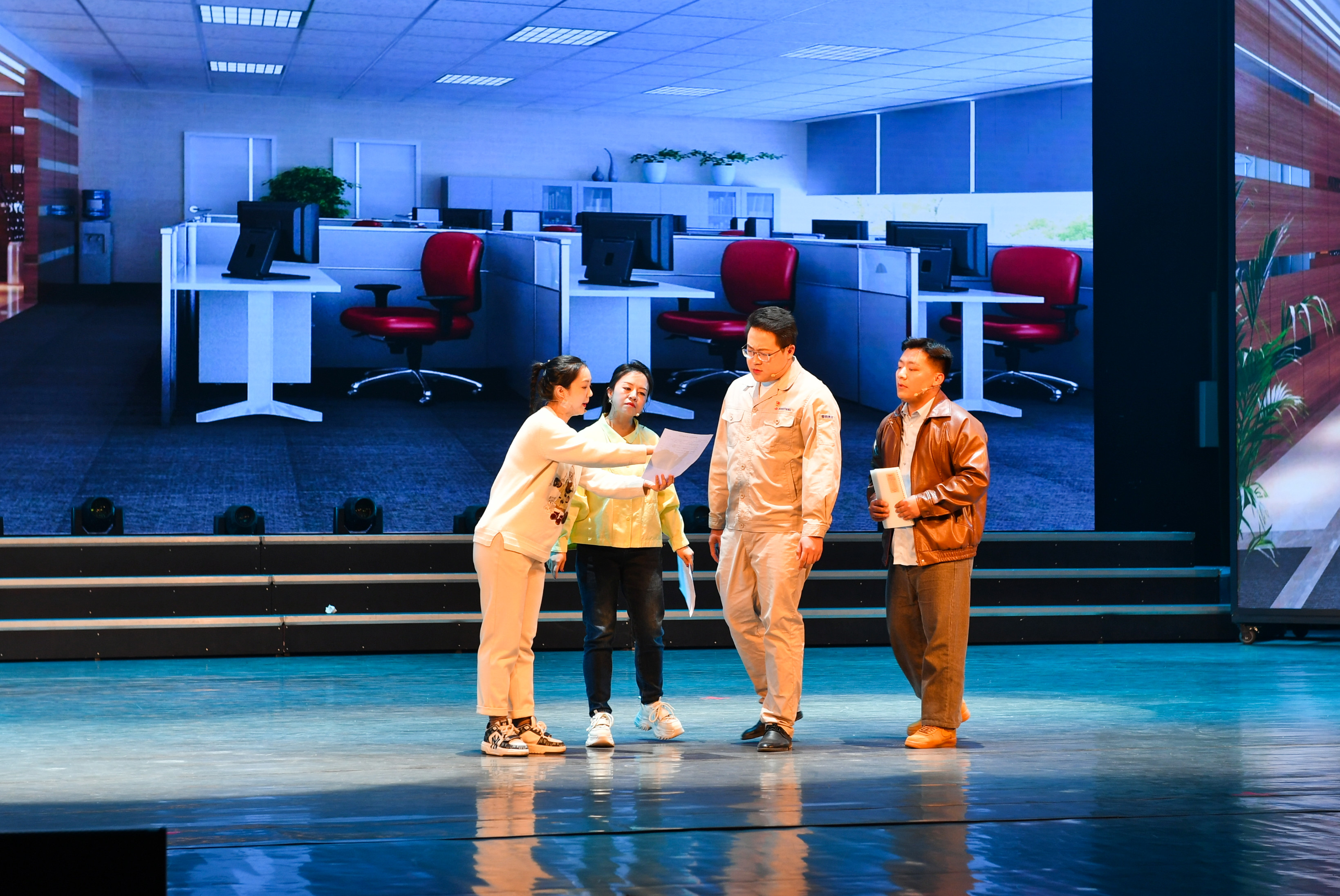 晚会以“守正创新 筑梦远航”为主题,通过歌舞《波涛之上》、诗朗诵《攀钢:迈进新时代》、群口相声《师徒闹新春》等12个节目,全方位生动展示了攀钢人抓机遇迎挑战,奋进拼搏新时代新气象新风貌。值得一提的是,舞蹈《焊花》、情景剧《攀钢人》,分别取材党的二十大代表梁恩荣、各条战线基层职工建功新攀钢的真实故事,艺术化地呈现了梁恩荣积极践行劳模精神、劳动精神和工匠精神,以及攀钢职工舍小家为大家的敬业精神,鲜明表达了攀钢人为全力实现鞍钢集团“双核+第三极”战略的爱岗敬业拼搏奉献之情,赢得满堂喝彩。